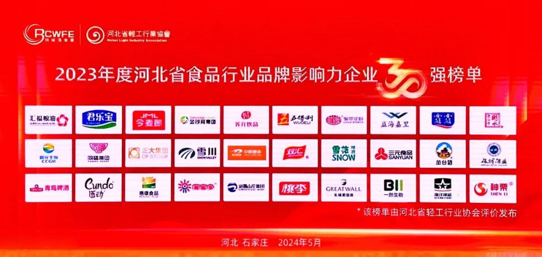 5月28日由河北省輕工行業(yè)協(xié)會主辦的2024中國(石家莊)現(xiàn)代食品產(chǎn)業(yè)博覽會暨瑞城第四屆中國酒類與食品飲料(華北)展覽會在石家莊國際會展中心盛大開幕。開幕式上發(fā)布了“2023年度河北省食品行業(yè)品牌影響力企業(yè)30強榜單”,河北衡水老白干酒業(yè)和河北板城酒業(yè)位列其中。板城酒業(yè)再次憑借產(chǎn)品硬實力與品牌文化軟實力得到行業(yè)肯定,充分彰顯了冀酒的品質(zhì)自信,也傳遞出行業(yè)、社會對板城酒業(yè)品牌文化的高度認可。