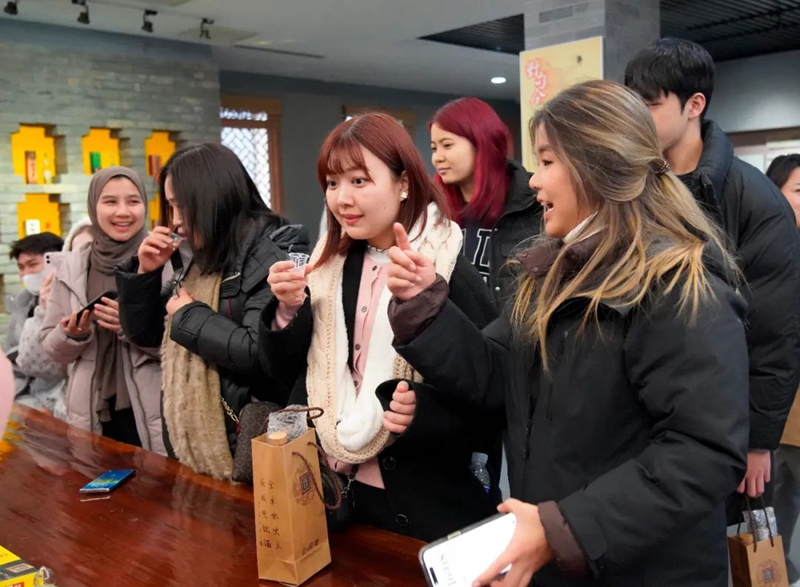 交流中,海外留學生們表達了對板城酒文化的濃厚興趣和對板城酒業(yè)與時俱進高質量發(fā)展的贊嘆。