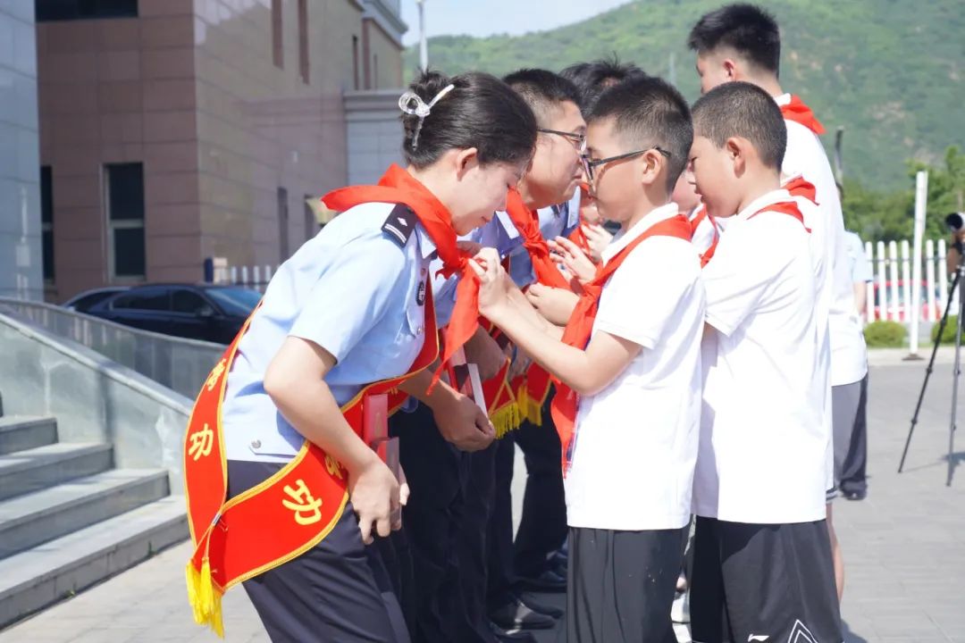 在開營(yíng)儀式上,河北省公安廳黨委委員、政治部主任齊建政向承德市公安機(jī)關(guān)立功受獎(jiǎng)民警代表頒獎(jiǎng)。夏令營(yíng)的公安英烈子女代表為獲獎(jiǎng)民警敬戴紅領(lǐng)巾。這一刻,孩子們仰慕的眼神讓獲獎(jiǎng)民警心情難以平靜,他們把孩子們摟在懷里,真情祝福他們健康成長(zhǎng)。公安英烈子女代表黃昶瑋代表夏令營(yíng)的孩子們發(fā)言,他說,我們會(huì)牢記各位英模、公安前輩的囑托,繼承和發(fā)揚(yáng)父輩的忠誠本色和優(yōu)良作風(fēng),樹立戰(zhàn)勝困難的信心和勇氣,沿著父輩的足跡堅(jiān)定前行,早日成為建設(shè)國(guó)家、服務(wù)人民的棟梁之才。