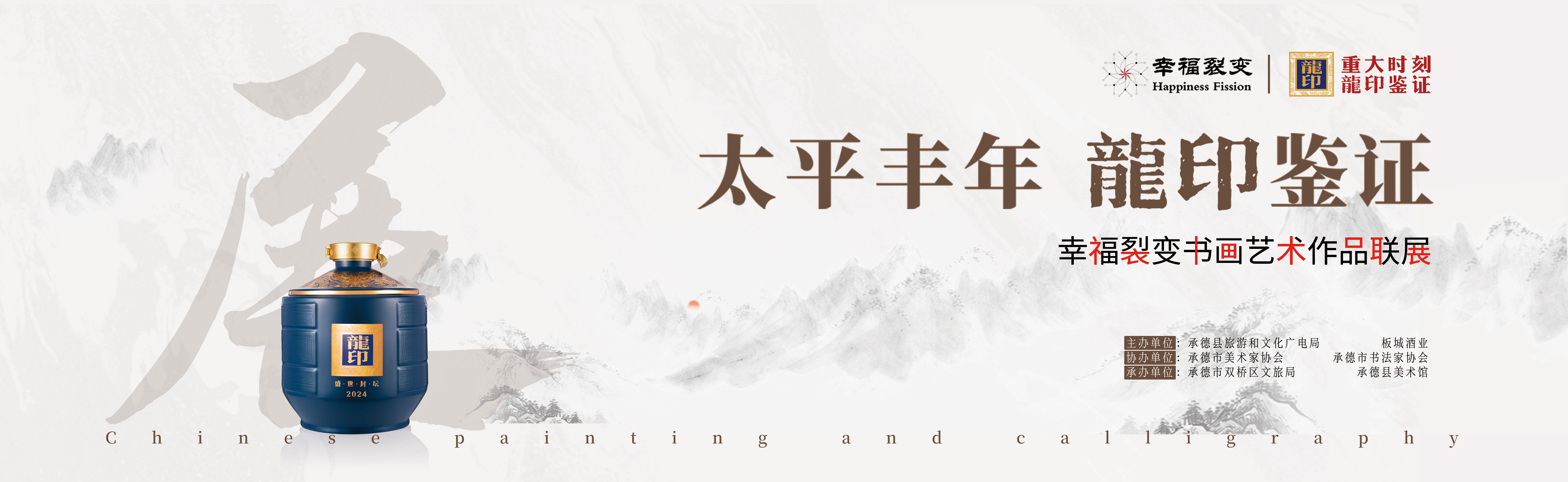 太平豐年,龍印鑒證;9月19日,由承德縣旅游和文化廣電局、板城酒業(yè)主辦;承德市美術(shù)家協(xié)會(huì)、承德市書法家協(xié)會(huì)協(xié)辦;承德市雙橋區(qū)旅游和文化局、承德縣文化館承辦的“太平豐年龍印鑒證——幸福裂變書畫藝術(shù)作品聯(lián)展”活動(dòng)盛大開幕。