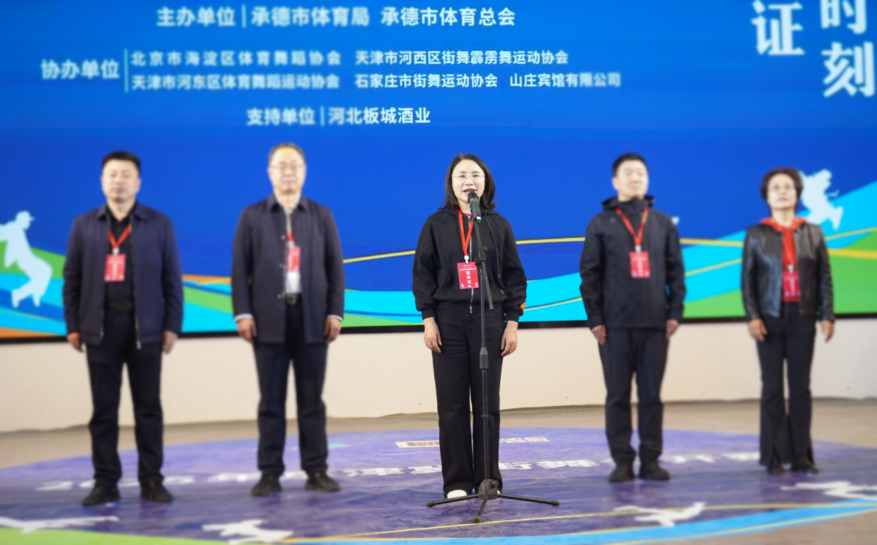 在開(kāi)幕式上,承德市體育局局長(zhǎng)孫成偉在活動(dòng)上致辭。此次舉辦街舞公開(kāi)賽為京津冀的街舞愛(ài)好者提供了交流機(jī)會(huì),是推動(dòng)京津冀街舞運(yùn)動(dòng)的發(fā)展,滿足人民群眾健身、健康需求的重要舉措,希望大家能積極享受比賽,通過(guò)體育競(jìng)技精神激發(fā)發(fā)展活力,為提升城市建設(shè)水平、推動(dòng)承德高質(zhì)量發(fā)展作出積極貢獻(xiàn)。