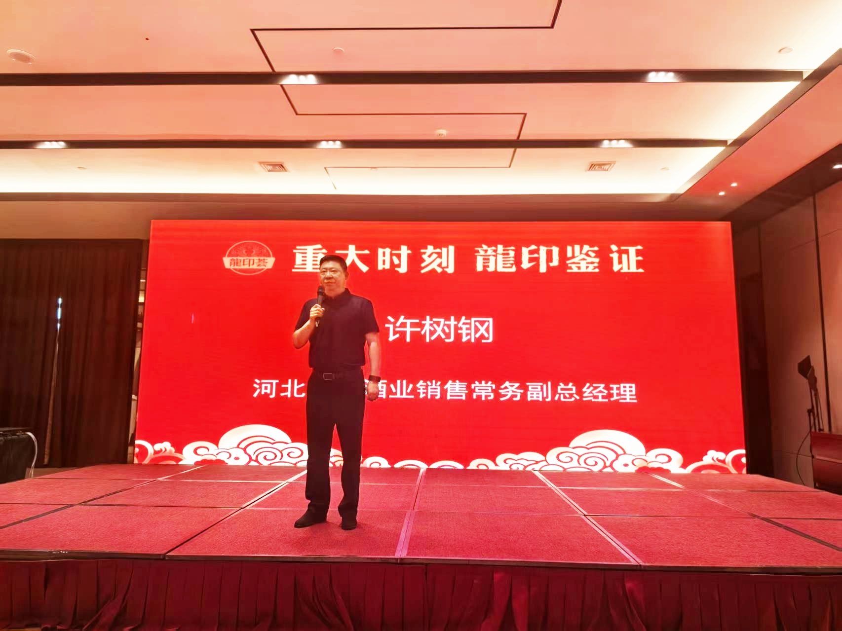 板城酒業(yè)銷售常務(wù)副總經(jīng)理許樹鋼,板城酒業(yè)石家莊戰(zhàn)區(qū)龍印部銷售總監(jiān)孫坤申,恒潤德酒類品牌管理有限公司董事長潘雁群,石家莊戰(zhàn)區(qū)龍印部區(qū)域經(jīng)理徐立國,恒潤德酒類品牌管理有限公司龍印事業(yè)部經(jīng)理張?jiān)约笆袇^(qū)核心終端客戶共同參會(huì)。