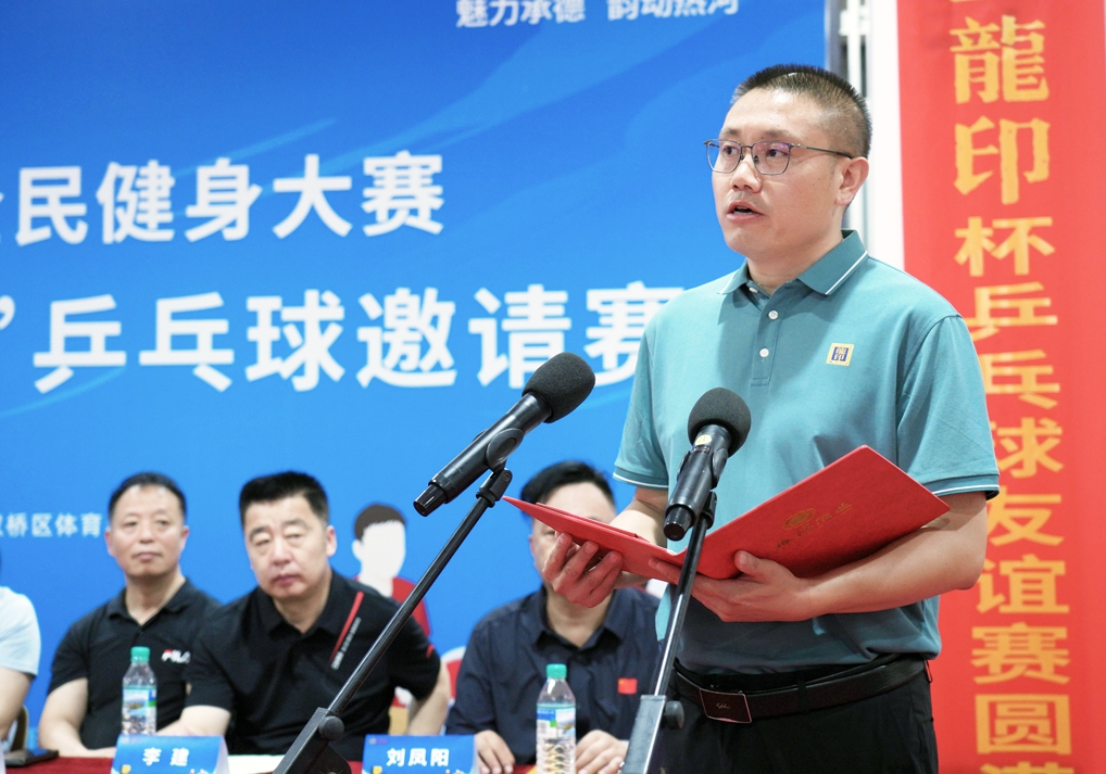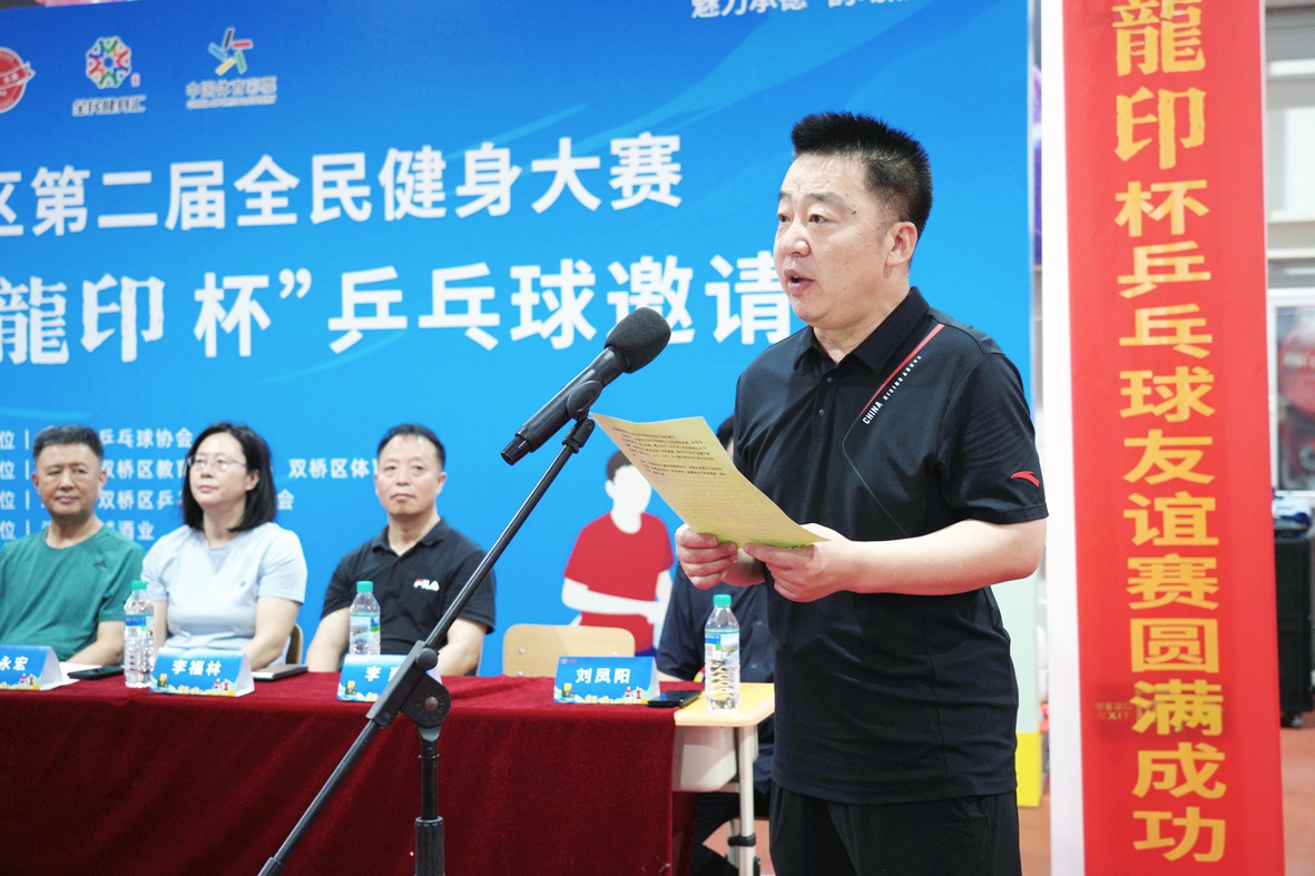 雙橋區(qū)教育和體育局局長李建致辭,他講到:“舉辦此次乒乓球賽是為廣大市民搭建了健身平臺(tái),為六省的乒乓球運(yùn)動(dòng)員提供了相互交流的機(jī)會(huì),也是推動(dòng)我區(qū)乒乓球運(yùn)動(dòng)發(fā)展,滿足我區(qū)人民群眾健身、健康需求的重要舉措,希望大家能積極享受比賽,感受體育魅力。”