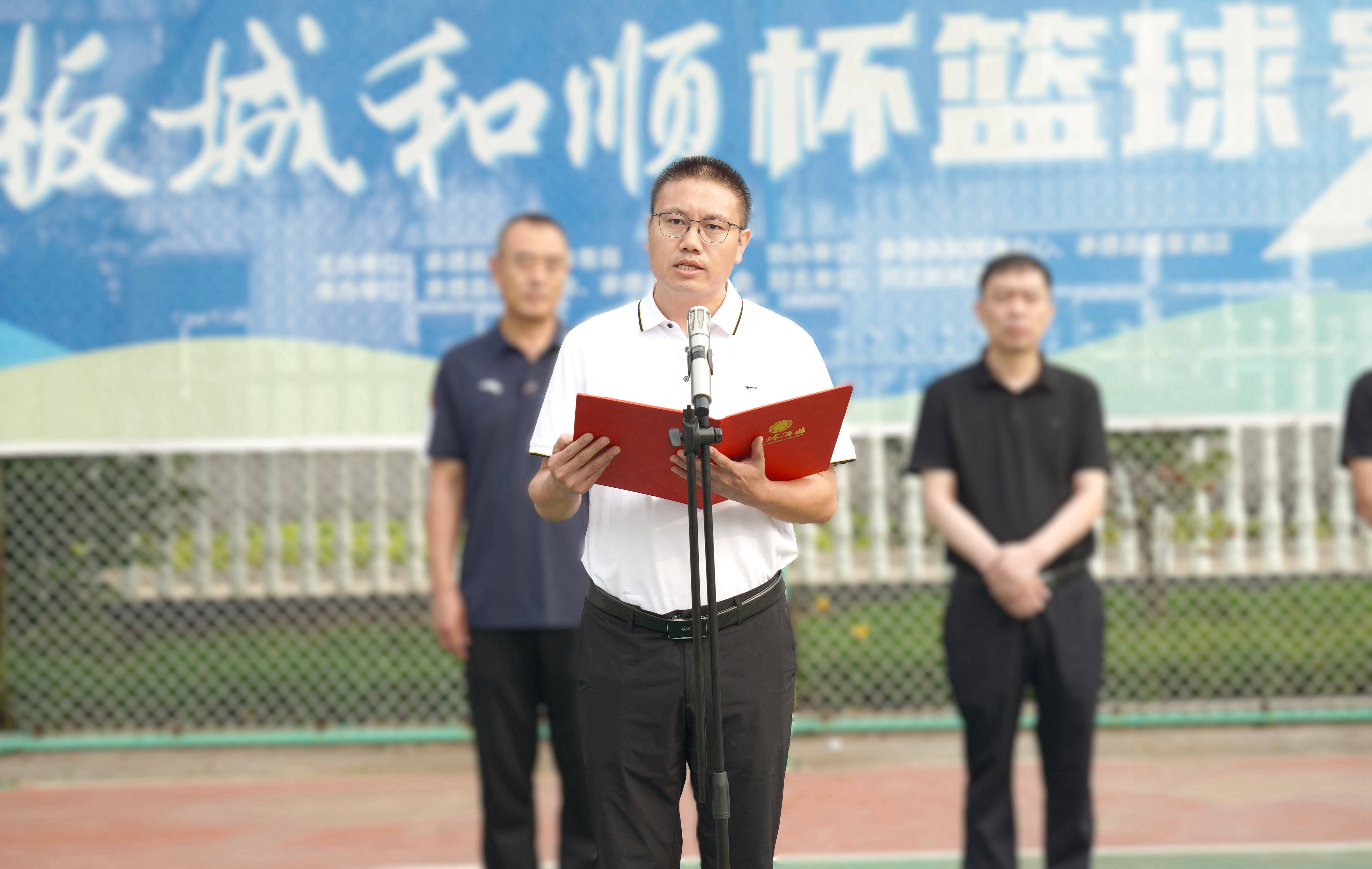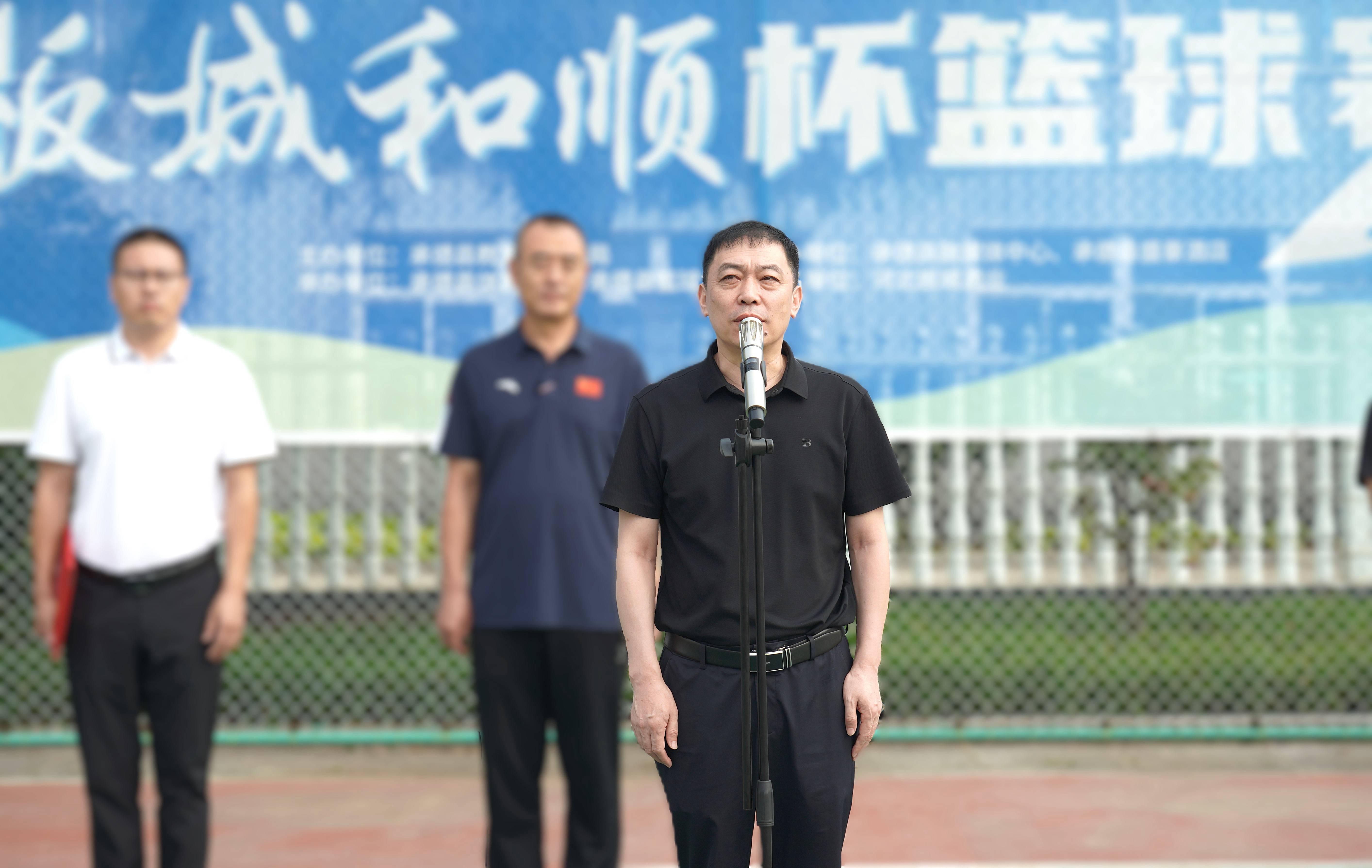 承德縣教育和體育局體育工作指導(dǎo)中心主任朱瑞東發(fā)表致辭,朱主任講到:“縣教體局聯(lián)合板城酒業(yè)持續(xù)舉辦體育賽事活動(dòng),連續(xù)舉辦七屆‘板城和順杯’籃球賽事,為承德縣全民健身提供了重要平臺(tái),縣教體局將持續(xù)開(kāi)展全民健身活動(dòng),搭建全民健身平臺(tái),開(kāi)展形式多樣的體育活動(dòng),讓承德縣人民參與多種體育賽事。”