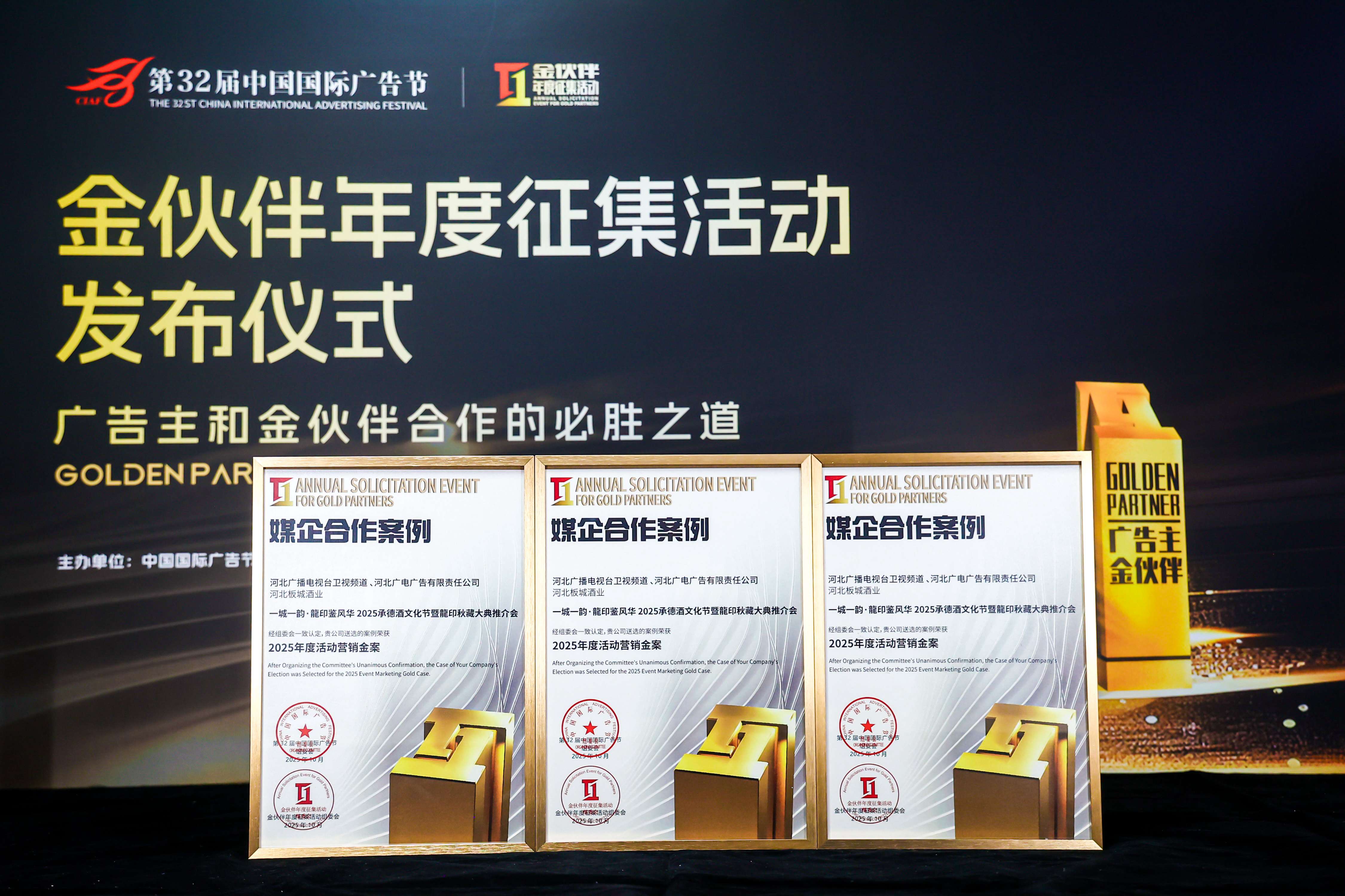 同時,板城酒業(yè)與河北衛(wèi)視合作的“一城一韻,龍印鑒風華2025承德酒文化節(jié)暨龍印秋藏大典推介會”案例榮獲2025年度活動營銷金案。