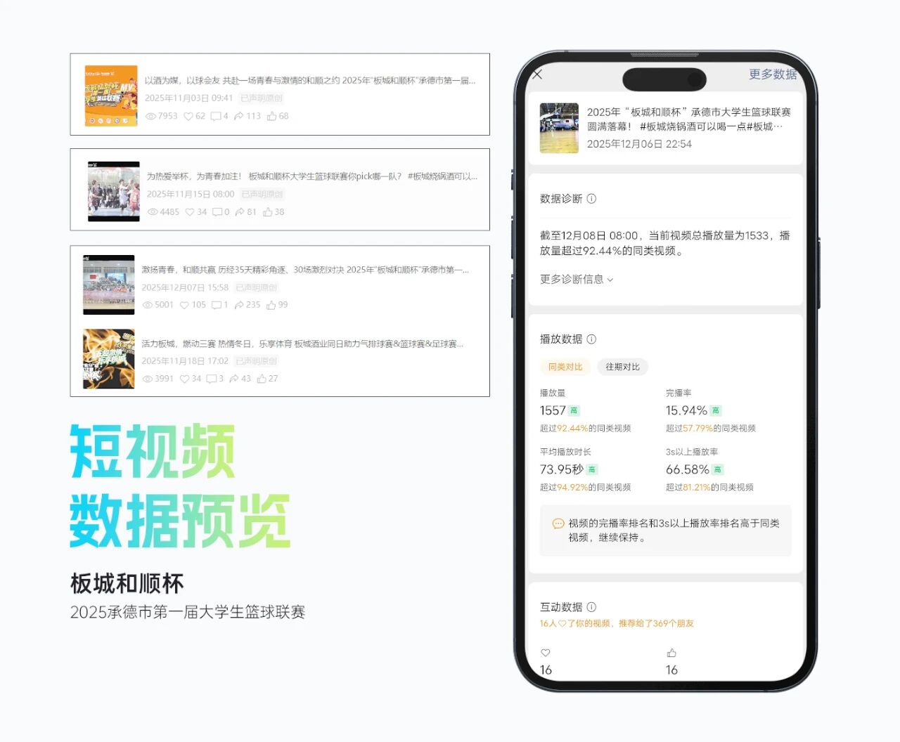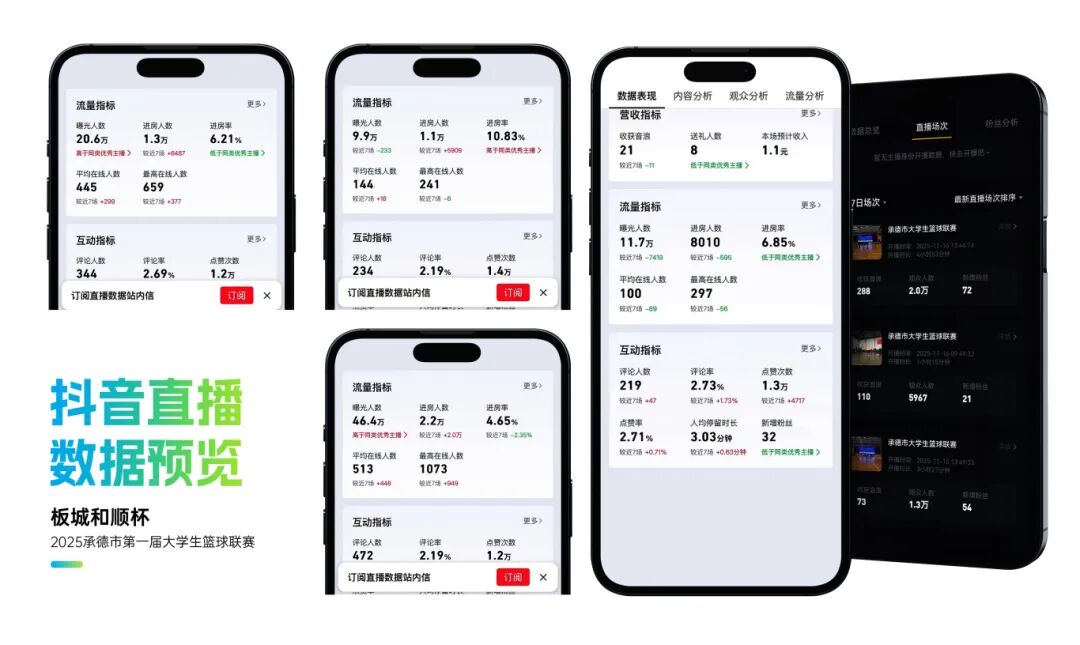 整體活動(dòng)影響力顯著,賽事抖音曝光超214萬,累計(jì)觀看直播人數(shù)超15萬人,現(xiàn)場累計(jì)吸引觀眾逾2萬人次,承德市籃球協(xié)會(huì)微信公眾號(hào)相關(guān)閱讀量超2萬人次,板城酒業(yè)視頻號(hào)平臺(tái)相關(guān)播放量超2.5萬人次。